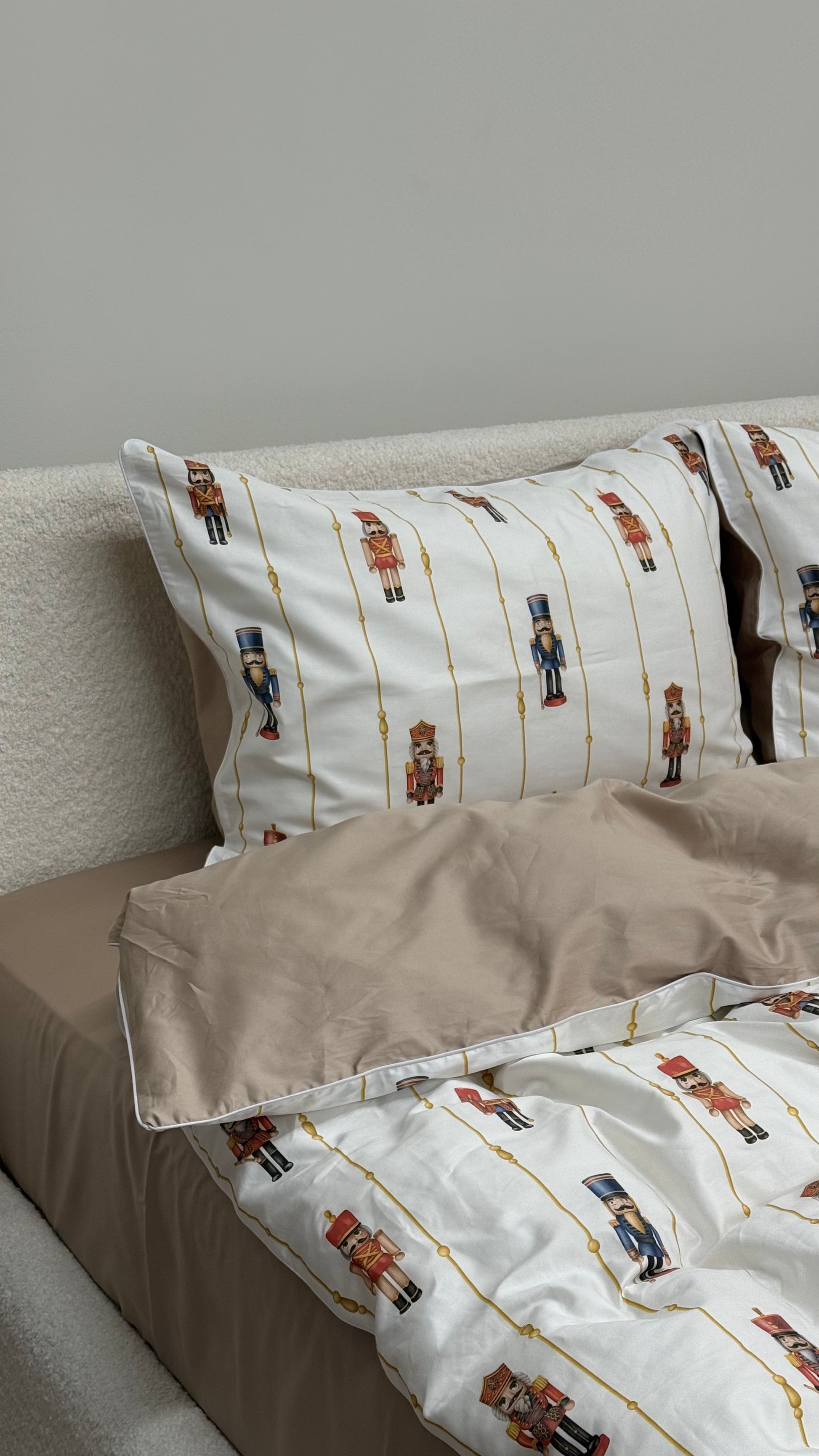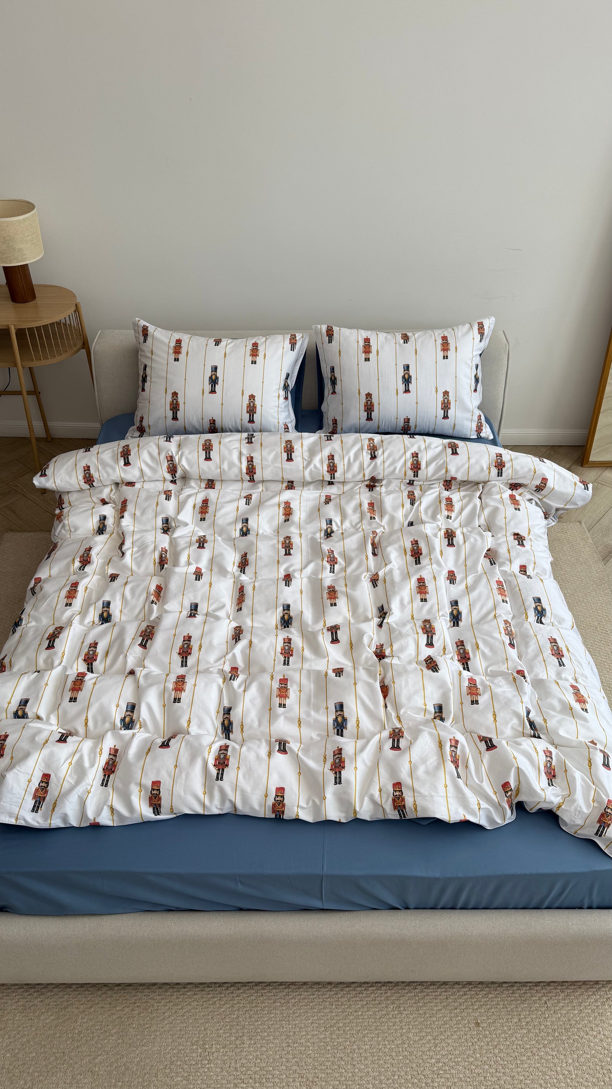 Nutcracker combines classic holiday figures with soft, understated detailing. The soldiers and small ornaments are drawn with clean lines and saturated tones, giving the set a steady, warm winter feel.