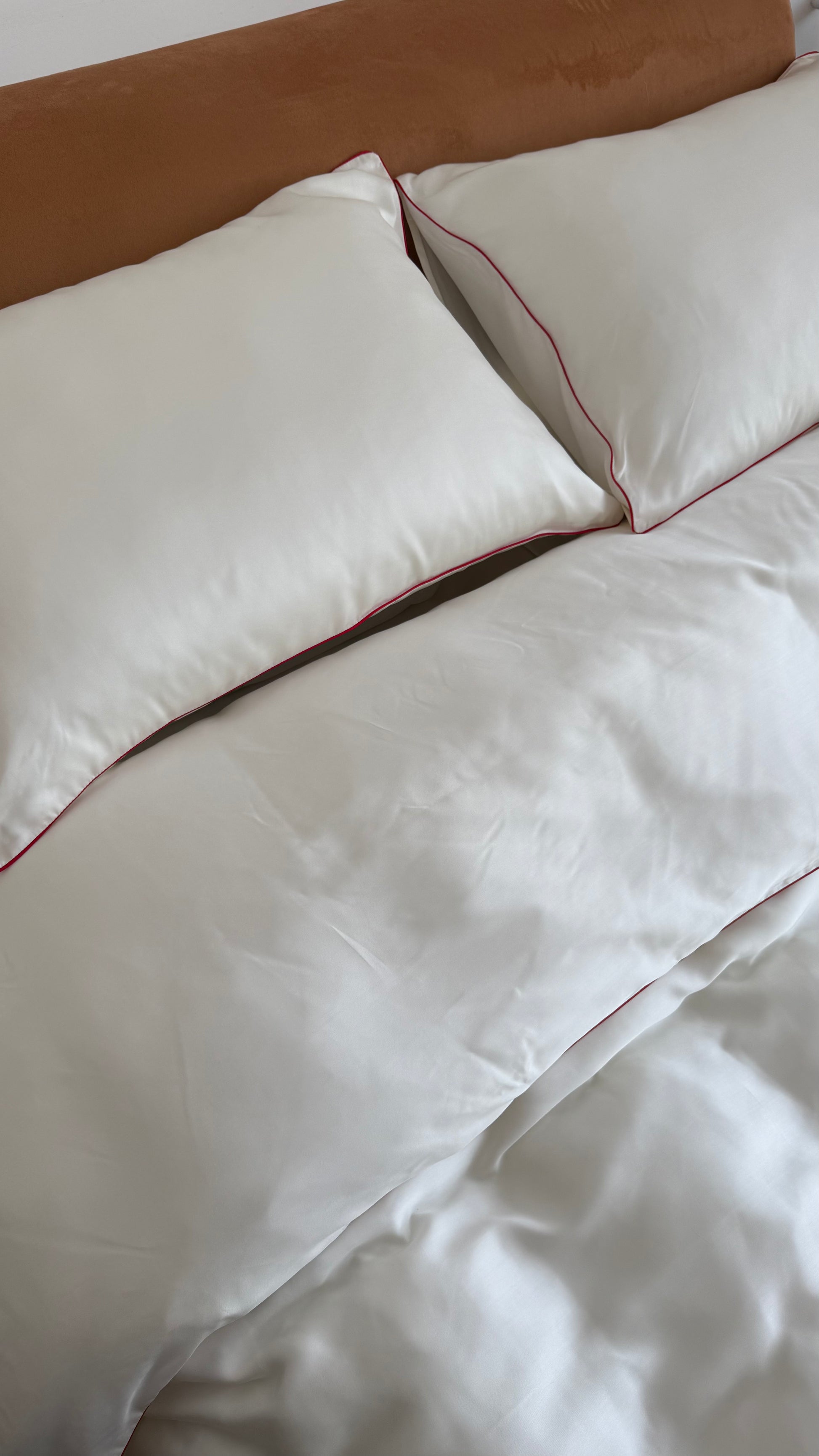 Made from 100% Tencel — a luxurious fabric made from eucalyptus wood using an eco-friendly closed-loop process. Naturally breathable, silky-soft, and cooling to the touch, it’s finished with fine piping for an elegant, weightless feel.